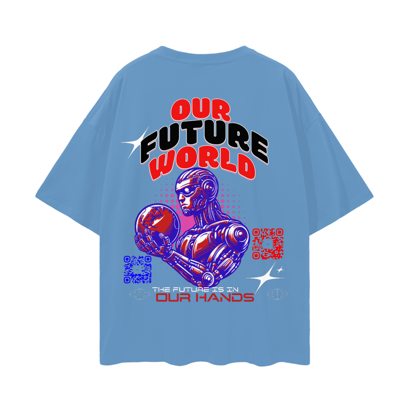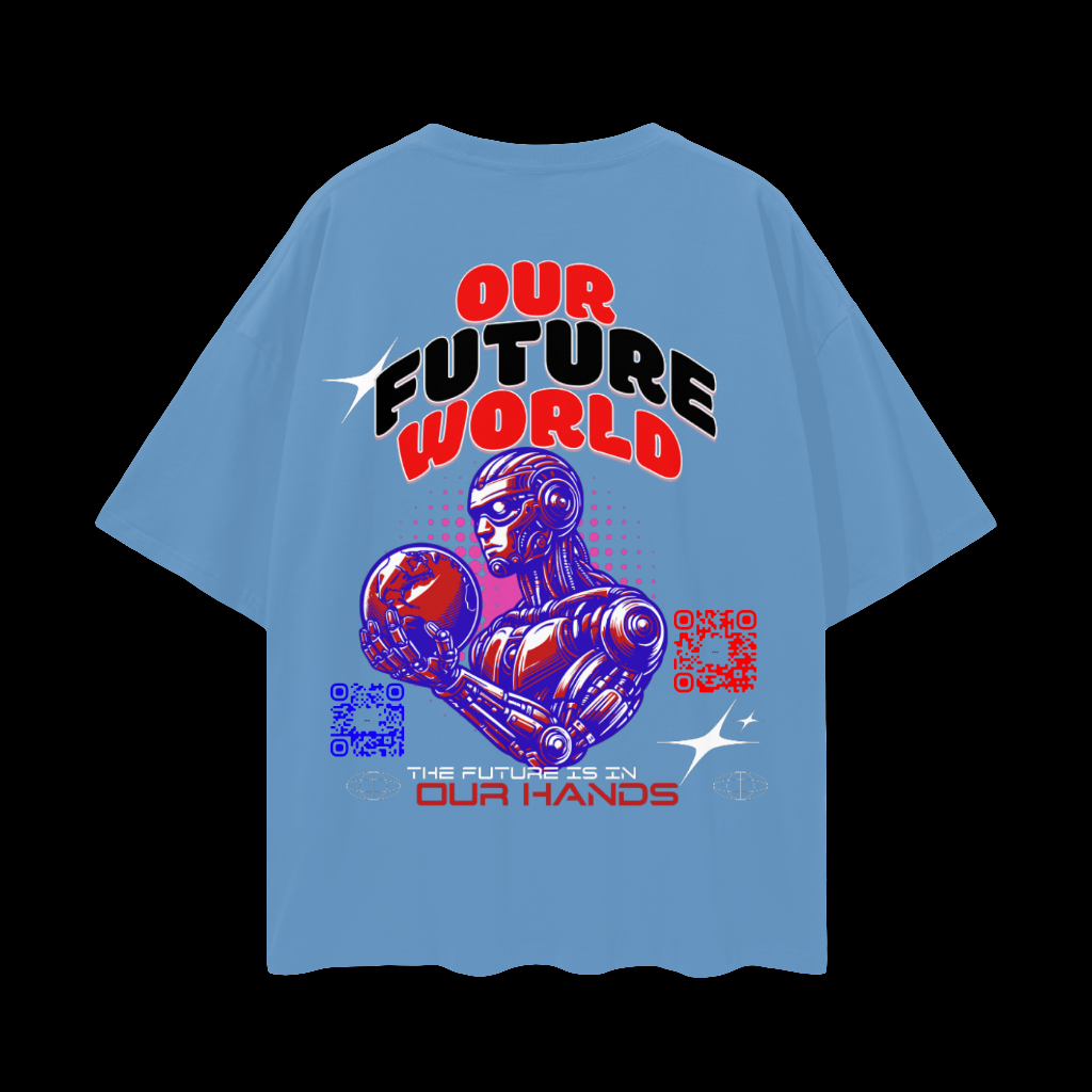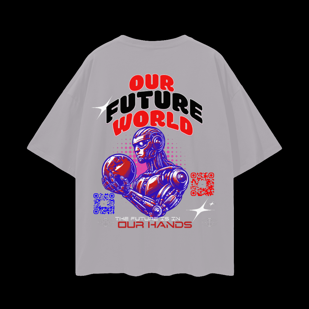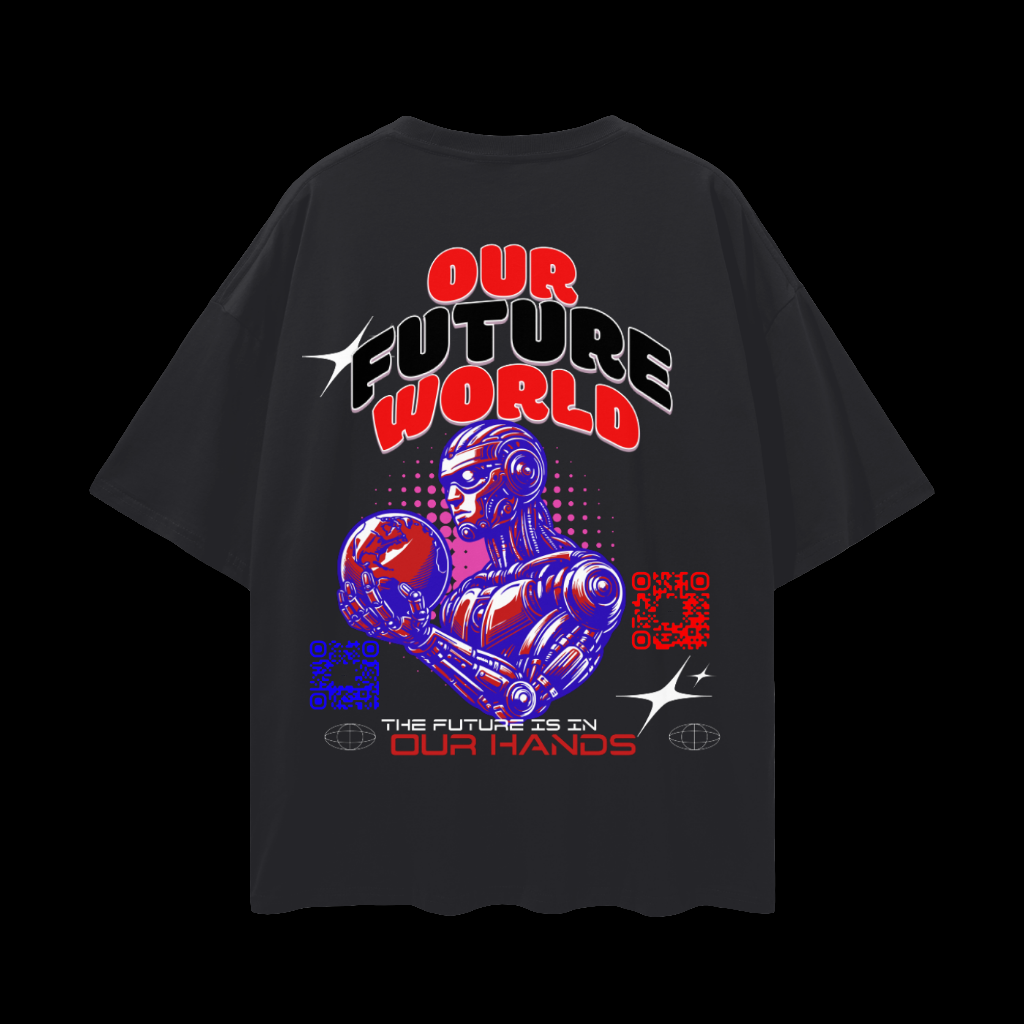 THE FUTURE IS IN OUR HANDS. As we step into tomorrow with this "FUTURE WORLD" tee. In wearing this powerful t-shirt it can hold as a reminder of how much we hold the ability to shape what is to come........''curious to know????!!!!!" scan the qr code on this tee to find out.