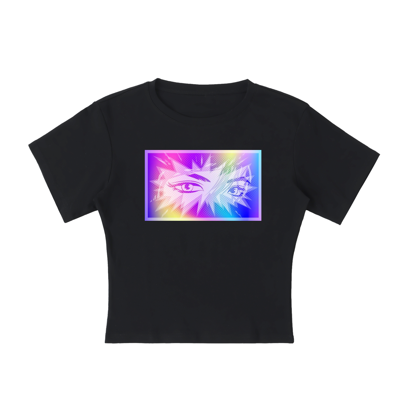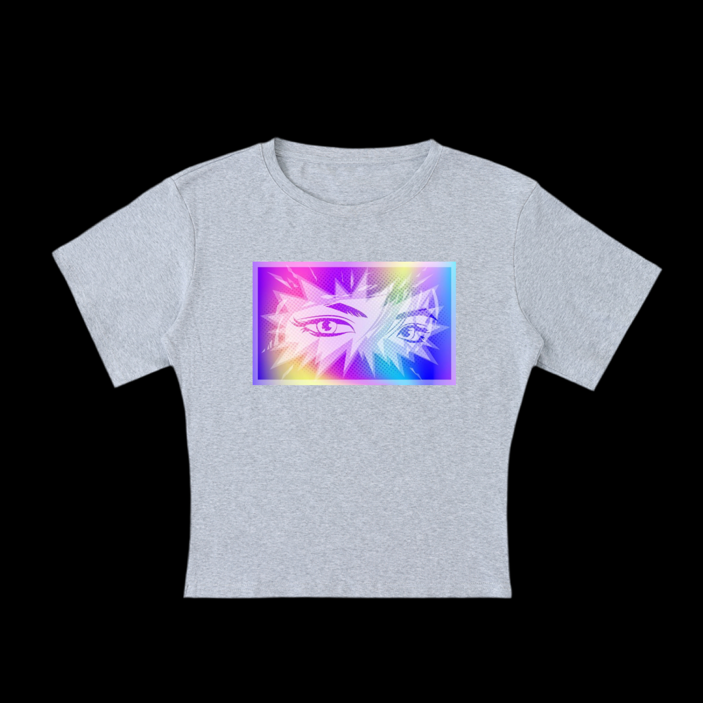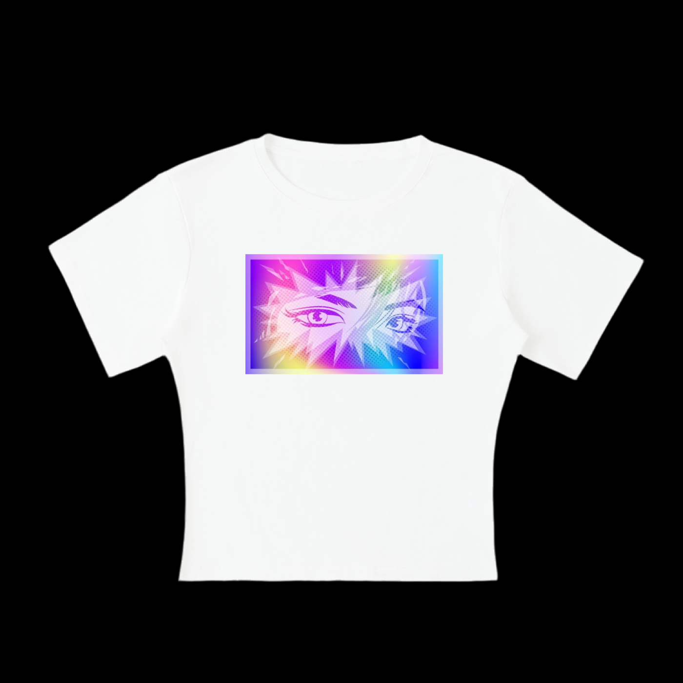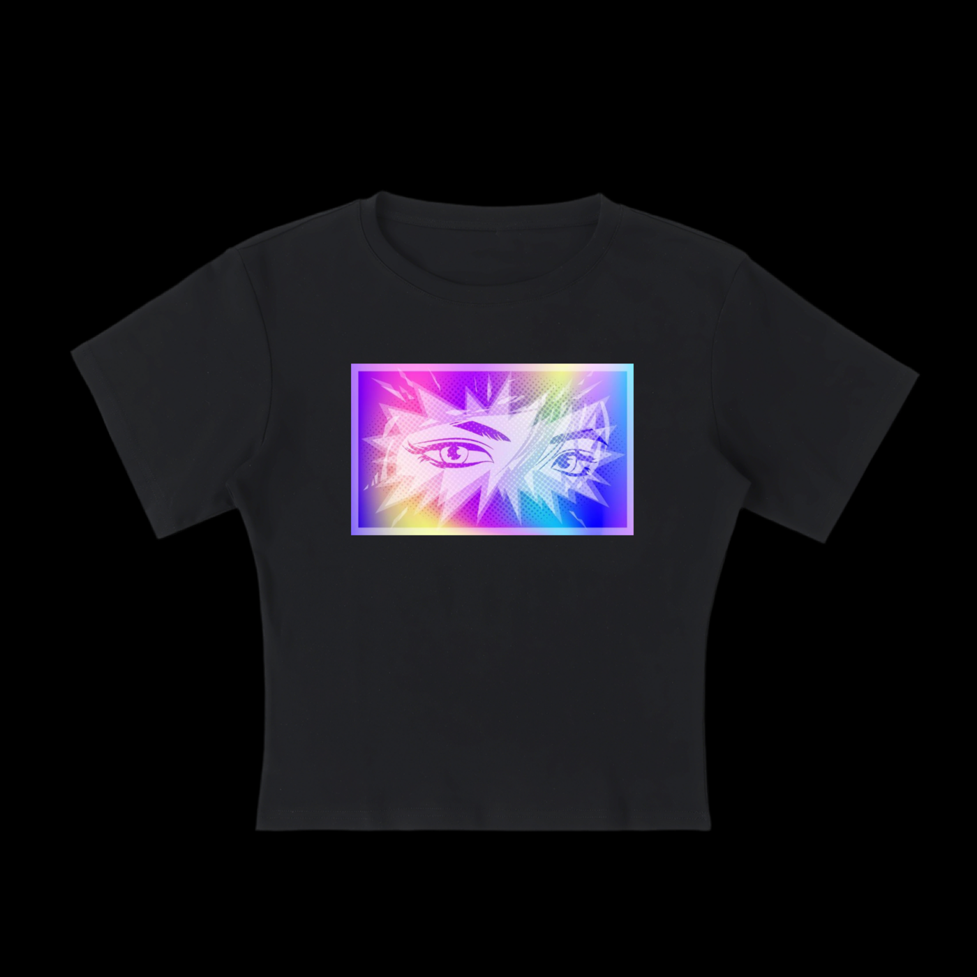 Step into Protocol: Lock Eyes — where one glance holds power. This crop top fuses kawaii-coded dominance with a vibrant glitch aesthetic, channeling a gaze that commands attention in any dimension. Whether you're leading the crew or glitching the system, this tee speaks before you do. Part of the official Kawaii Protocol series — soft, fierce, and unapologetically in control.